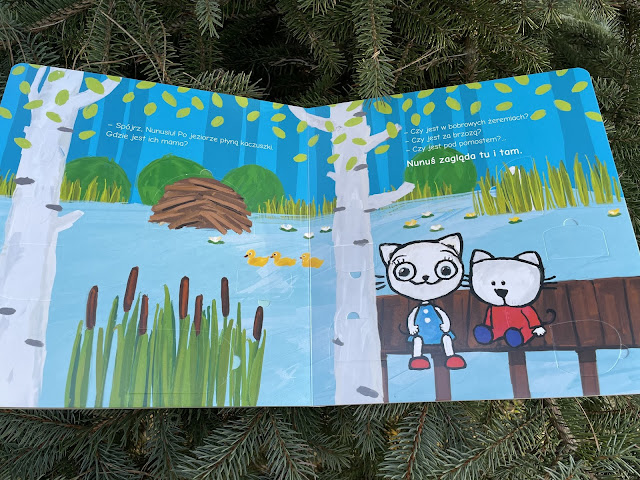 Jesteśmy fankami Kici Koci i Nunusia, codziennie czytamy o ich przygodach, a niektóre książeczki znamy na pamięć. Mimo to, z przyjemnością do nich wracamy. Chwilowo najciekawszą pozycją jest dla nas książeczka o przedszkolu oraz oczywiście nasza najnowsza z okienkami: "Kicia Kocia i Nunuś. Kto mieszka w lesie". Przygody Żubra Pompika są dla córki nowością, jednak dzisiaj zdążyłyśmy przeczytać naszego Pompika już kilka razy więc śmiało mogę stwierdzić, że Pompik zyskał dzisiaj kolejną małą fankę :)